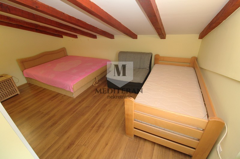 Raspored prostorija: dnevni boravak,kuhinja sa trpezarijom,kupatilo,velika terasa sa panoramskim pogledom na more,na spratu spavaća soba i toalet.
