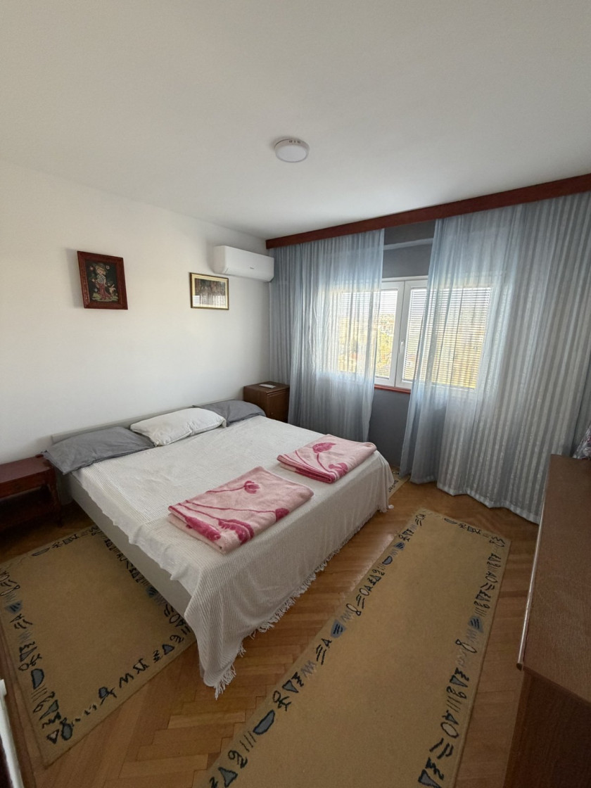 Opis: Iznajmljuje se namješten dvosoban stan na Zabjelu u Jerevanskoj ulici koji posjeduje 70m2. Stan se nalazi na šestom spratu, a zgrada ima lift. Struktura stana: ulazni hodnik, dnevni boravak, kuhinja, trpezarija, dvije spavaće sobe, kupatilo i terasa. Stan je jako šrostran, prostorije su dosta velike i prozračne, a takođe ima i idealan raspored. Pogodaan je za život i boravak više osoba, posjeduje sve što je neophodno za funkcionisanje i odmah je uselljiv. Nalazi se na prometnoj lokaciji, u blizini su svi poterbni sadržaji, ispred zgrade je i javni parking na kom ima dovoljno mjesta.
