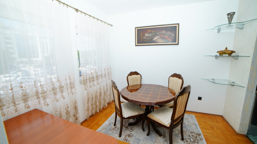 Opis: Iznajmljuje se namješten jednosoban stan na odličnoj lokaciji u naselju Preko Morače, u neposrednoj blizini Sabornog Hrama. Stan se nalazi na prvom spratu, zgrada posjeduje lift i izuzetno je kvalitetna. Stan se sastoji od: ulaznog hodnika,dnevnog boravka, kuhinje, spavaće sobe, kupatila i terase. Stan je odmah useljiv, posjeduje cjelokupan namještaj i predviđen je za dugoročan boravak. Nalazi se na mirnoj i lijepoj lokaciji, ispred zgrade se nalazi veliki javni parking. Pri useljenju daju se mjesečna zakupnina i depozit u vrijednosti jedne zakupnine.