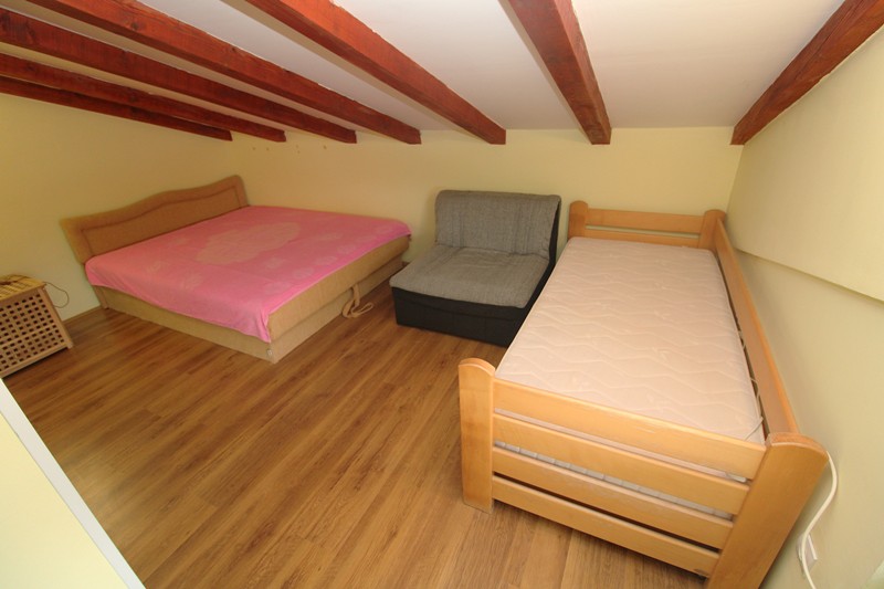 Raspored prostorija: dnevni boravak,kuhinja sa trpezarijom,kupatilo,velika terasa sa panoramskim pogledom na more,na spratu spavaća soba i toalet.