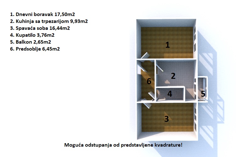 Opis: Iznajmljujemo lijep, svijetao i opremljen dvosoban stan površine 56m2. Stan se nalazi na prvom spratu stambene zgrade izgrađene u ulici Bosanskih gazija, u ilidžanskom naselju Pejton. Sastoji se od dnevnog boravka, kuhinje sa trpezarijom, jedne spavaće sobe, kupatila, ustakljenog balkona i predsoblja. Izuzetno je svijetao i prozračan tokom većeg dijela dana, a obzirom da je jugozapadno orjentisan, ima prelijep, otvoreni pogled prema rijeci Željeznici što ga čini posebno ugodnim za boravak.
