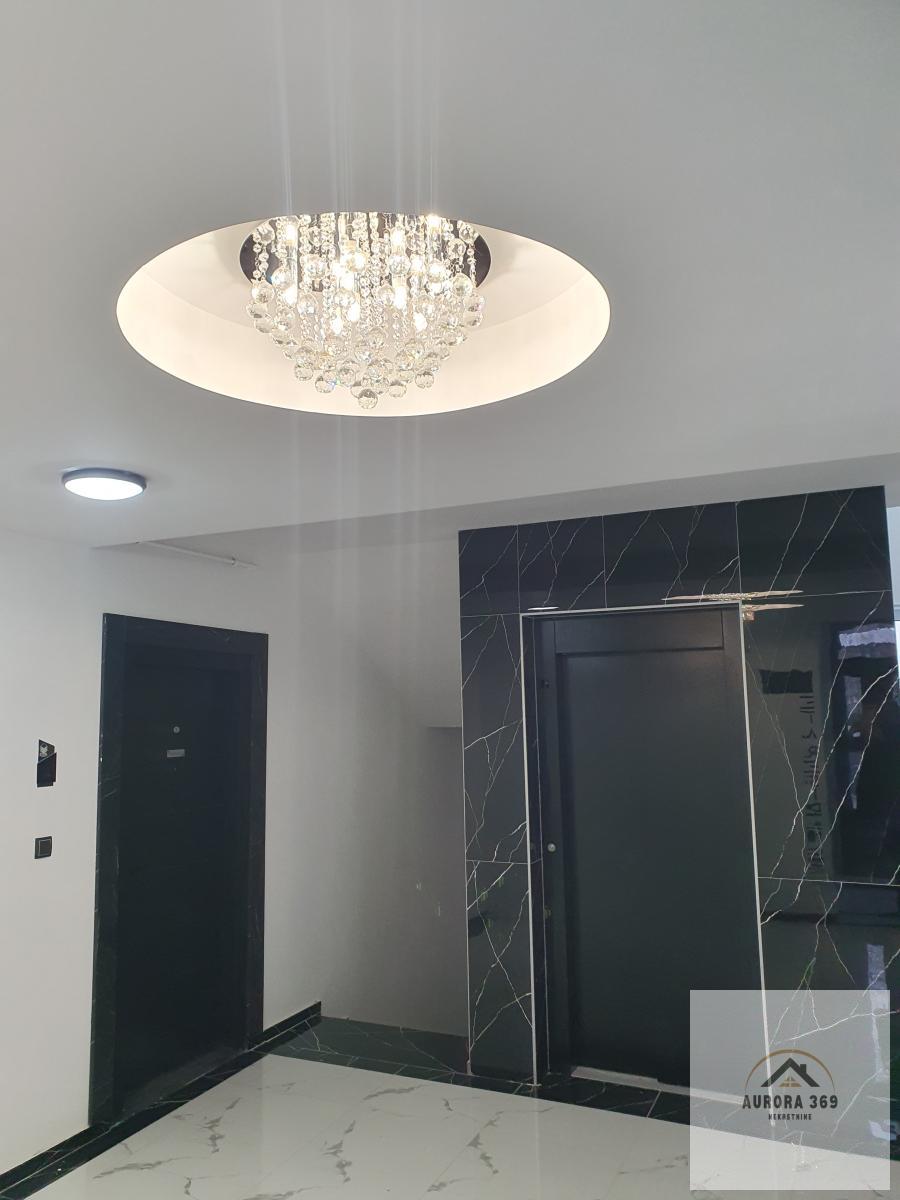 Prelep kristalni luster u hodniku uz crni mermer učiniće od svakog ulaska u zgradu poseban doživljaj.