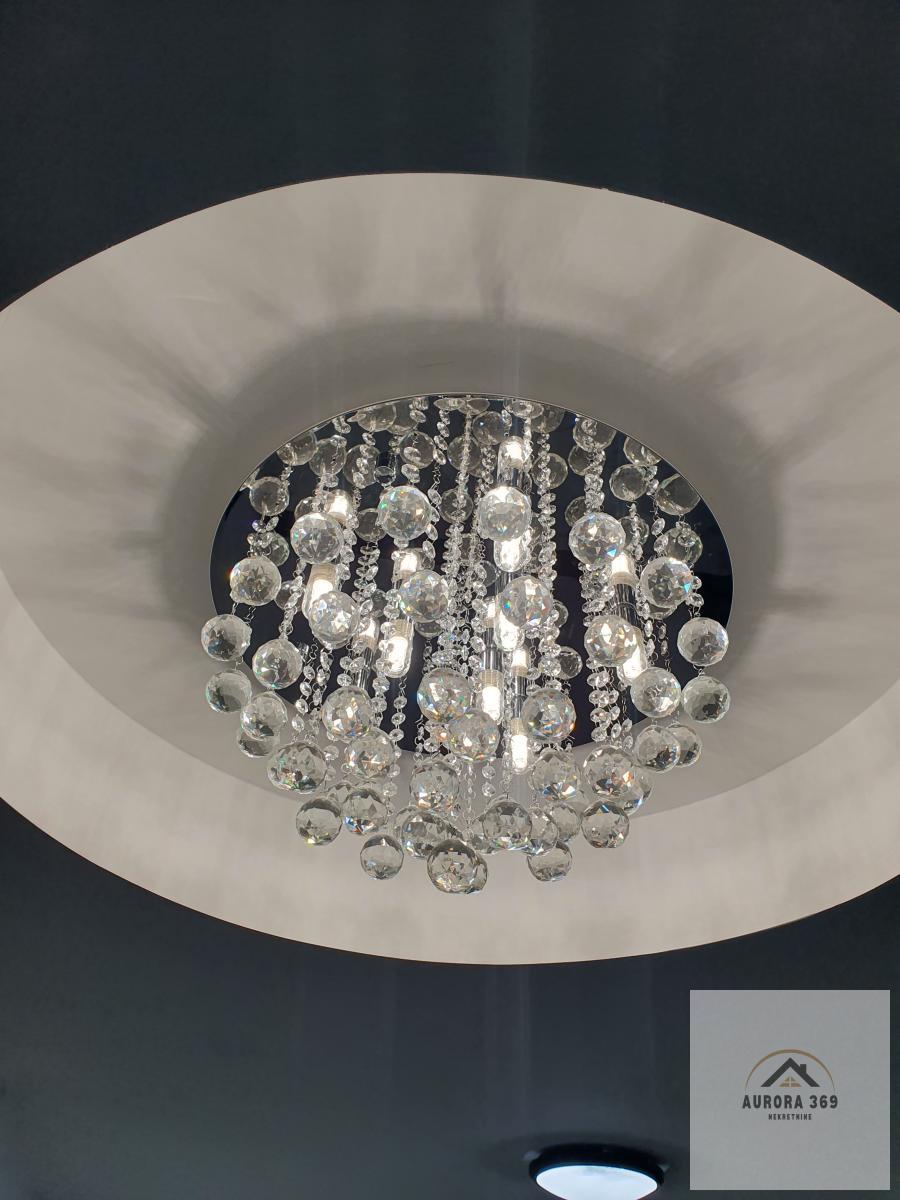 Prelep kristalni luster u hodniku uz crni mermer učiniće od svakog ulaska u zgradu poseban doživljaj.