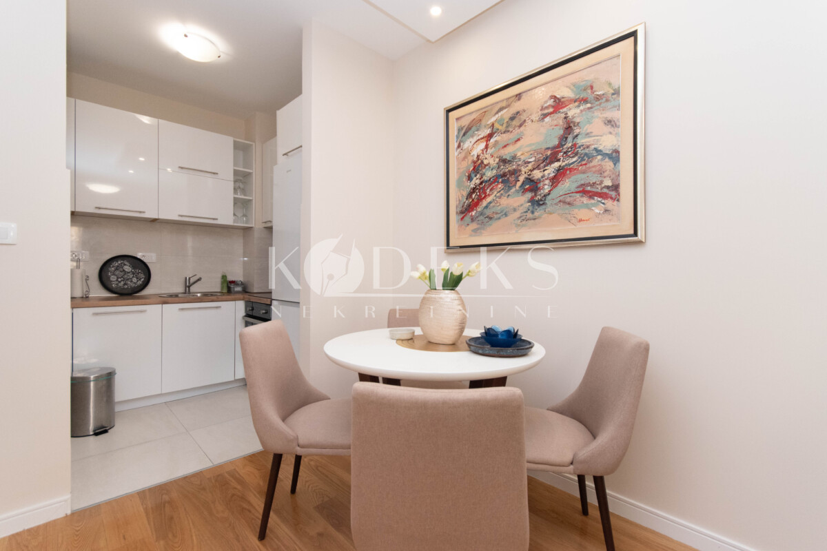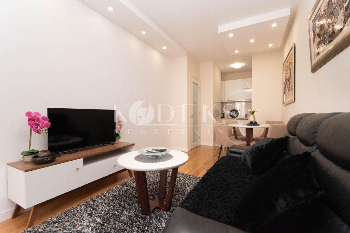 Opis: Izdaje se lijepo opremljen jednosoban stan smješten na drugom spratu zgrade u kvartu Central point (Faza V).