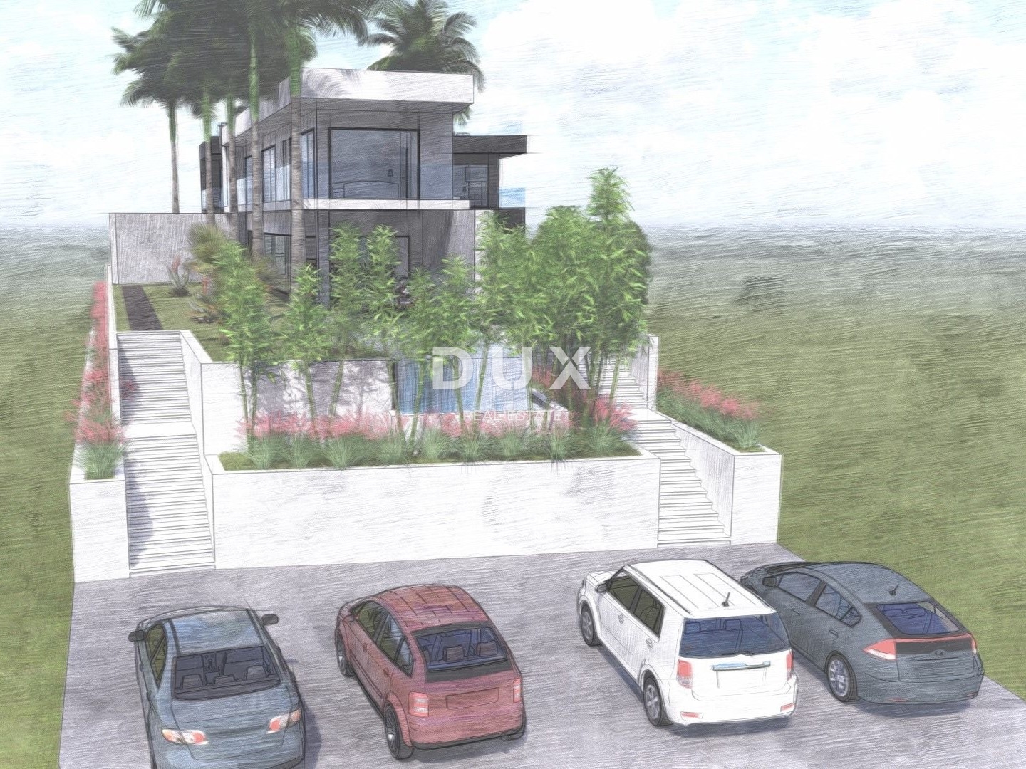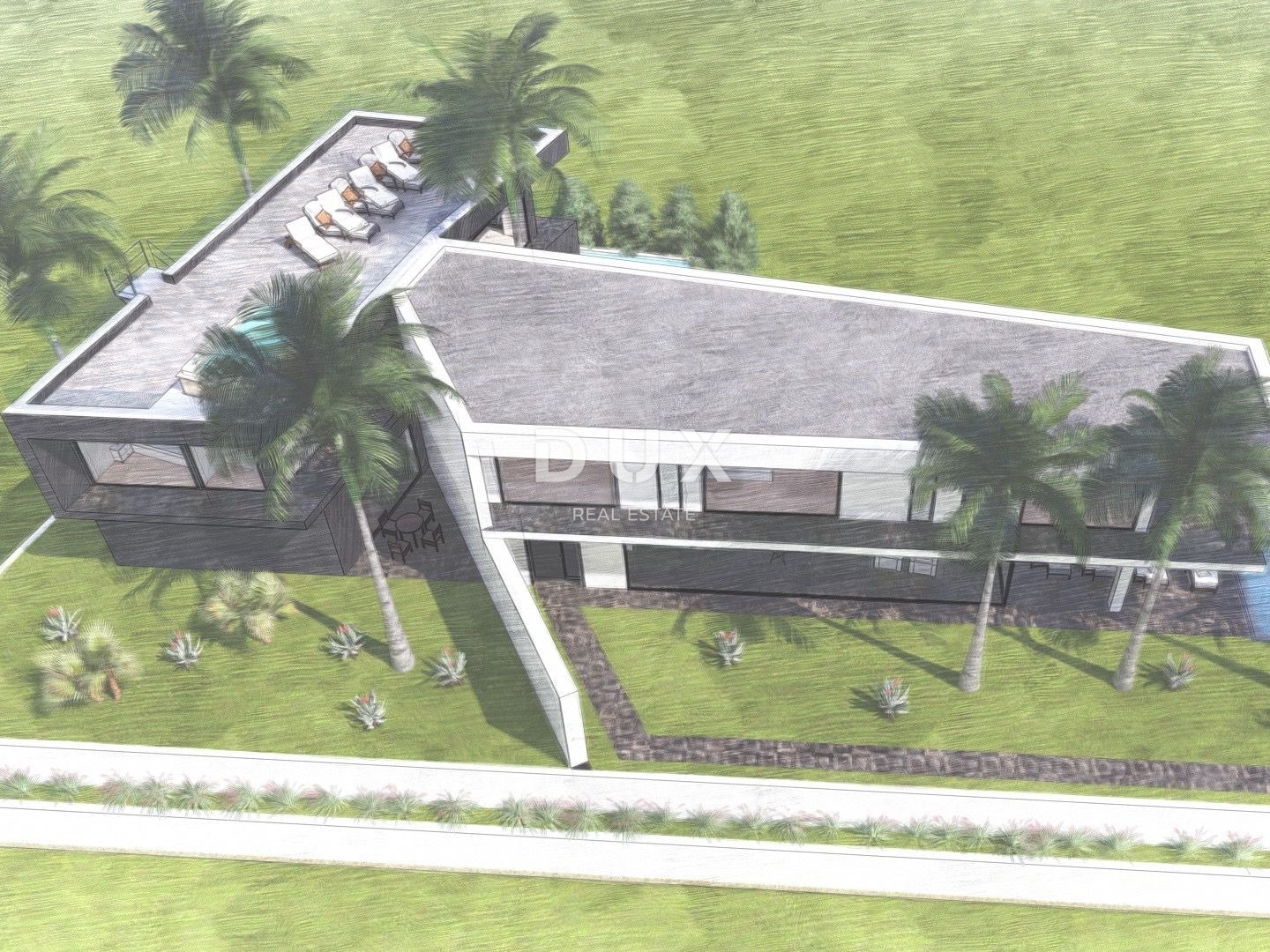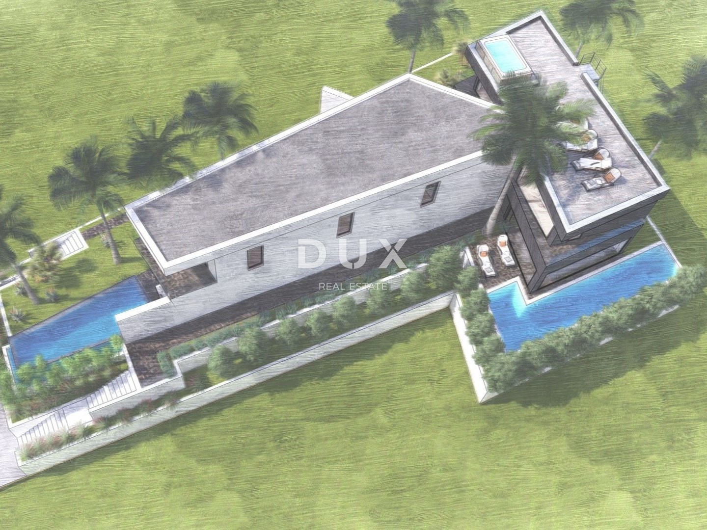 Parcela već ima izrađeno idejno rješenje za dvije elegantne, moderne duplex vile na dvije etaže, s bazenom i osiguranim parkirnim mjestima — idealan početak za nekoga tko želi luksuzan projekt bez dugotrajnog planiranja.