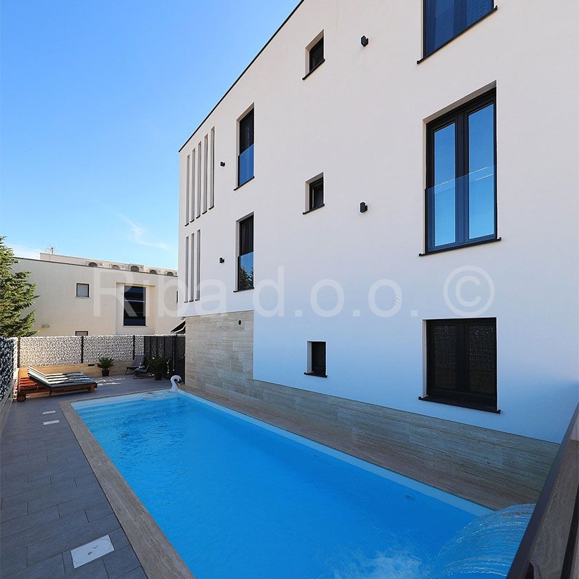 Opis: Prodaje se moderna vila u Maslenici, s četiri potpuno opremljene stambene jedinice, smještena svega 30 metara od plaže. Ova ekskluzivna nekretnina nudi predivne poglede na more.