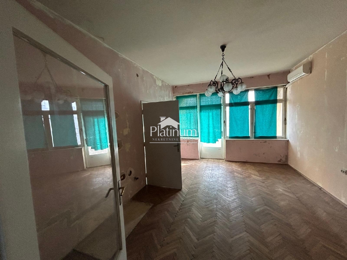 Opis: U blizini centra Pule, prodaje se stan na trećem katu za adaptaciju koji se sastoji od ulaznog hodnika, spavaće sobe, dnevnog boravka, kuhinje s blagovaonom, ostave, toaleta, kupatila, natkrivene terase i balkona.