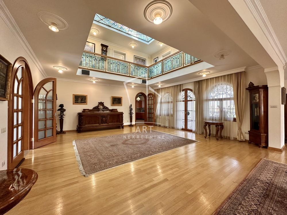 Opis: Na prestižnoj lokaciji Dedinje, izdaje se izuzetna kuća površine 684 m2, na placu od 11 ari, sa uređenim dvorištem, bazenom i zidanim roštiljem.