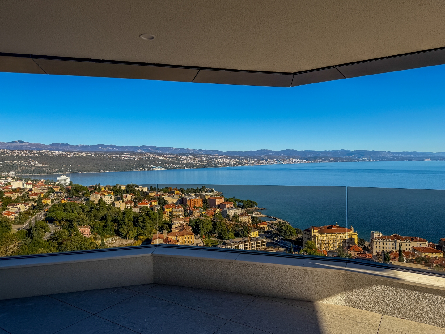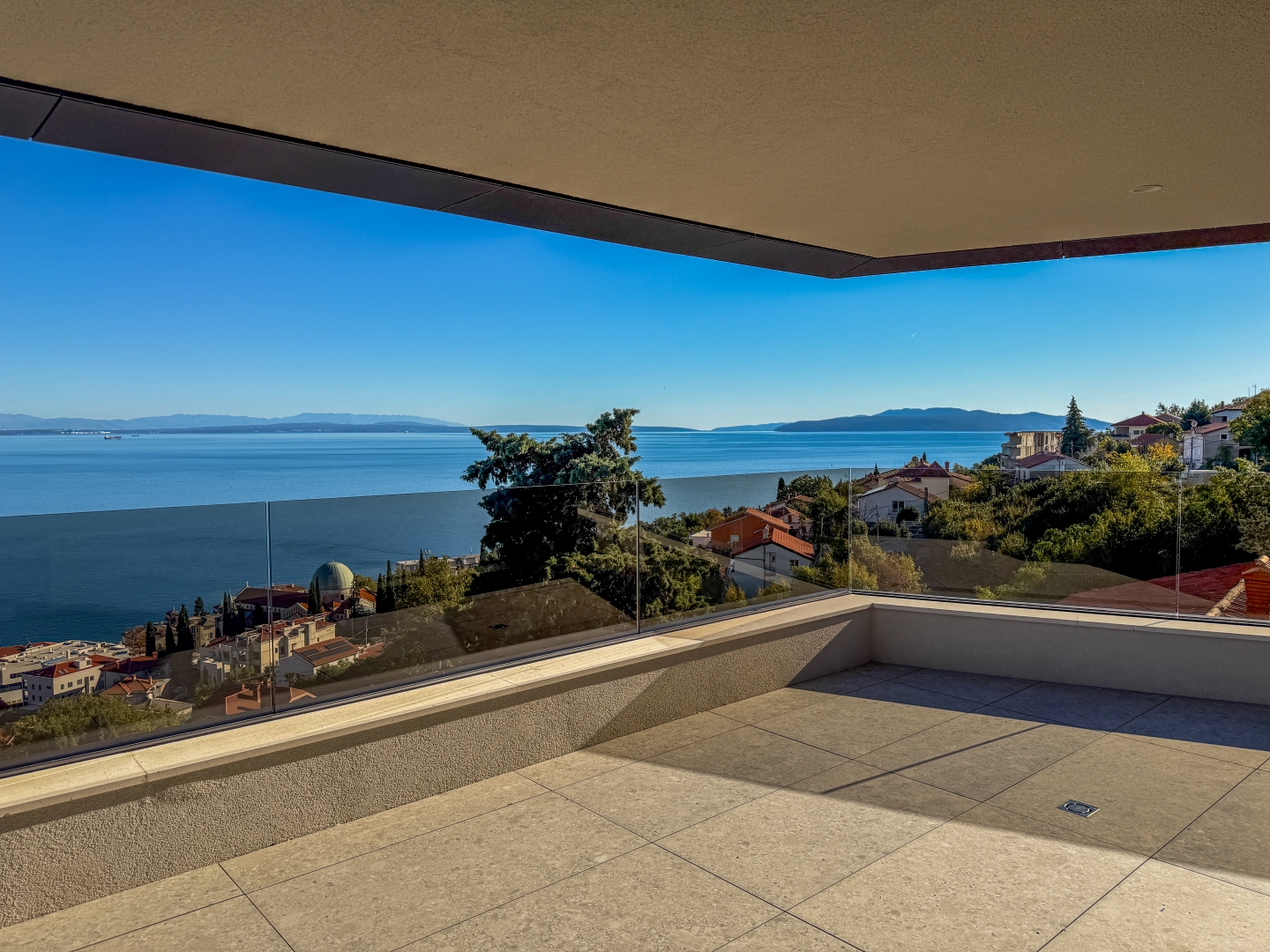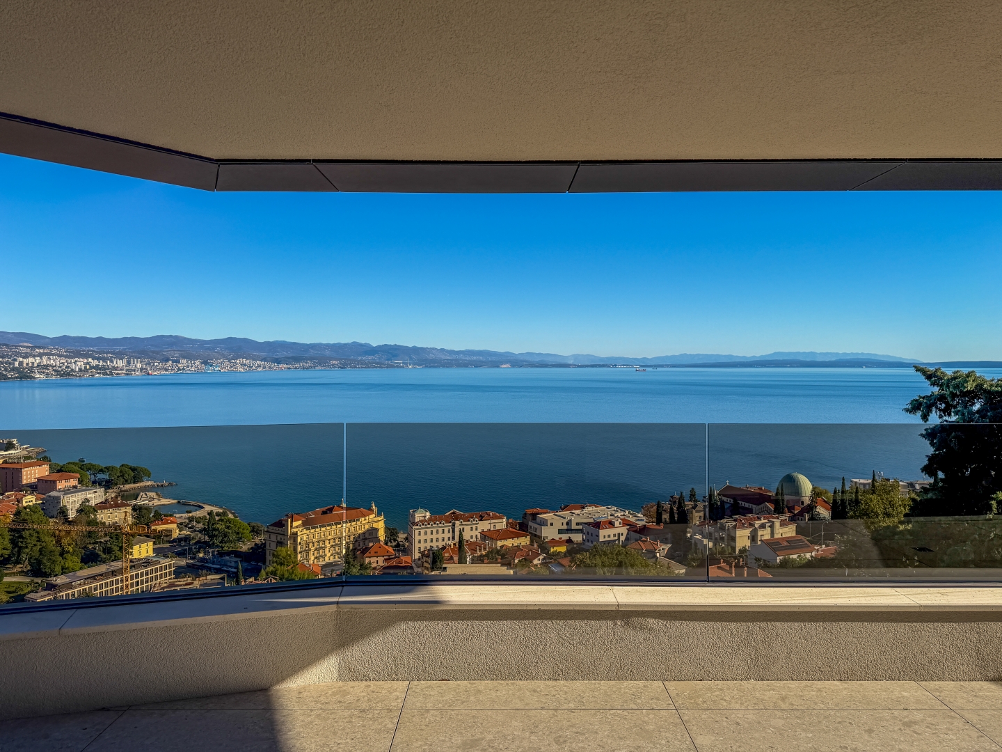 Opis (Engleski): OPATIJA, CENTER | Luxury Penthouse in a New Residence with Wellness, Gym and Garage, 1 km from the SeaFor sale is a remarkable penthouse in the very heart of Opatija, located in a newly built luxury residence just one kilometer from the Lungomare seaside promenade. This exclusive property offers 143 m² of refined living space, including a 21 m² covered terrace and an additional 4 m² open terrace — both enjoying a beautiful view of the Adriatic Sea.The interior layout includes an entrance area, hallway, a bright open-plan living room with kitchen, two bedrooms, two bathrooms, and a storage room. Both bedrooms, as well as the living area, have direct access to the terrace, creating a harmonious connection with the outdoor space.The penthouse includes two parking spaces available at an additional cost, with the option to purchase more. A private storage room and an outdoor parking space are also part of the offer....
