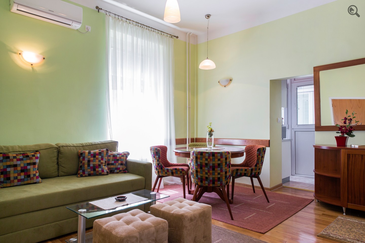 Opis: Apartman Opera se nalazi u ulici Obilićev Venac, koja se vezuje na ulicu Kneza Mihaila, najlepšu ulicu u samom srcu Beograda. Apartman Opera se nalazi na samo nekoliko minuta šetnje od kalemegdanskog parka, Zoo-loškog vrta i boemske četvrti Skadarlija, u kojoj se nalazi mnoštvo restorana i barova. Na 10 metara od apartmana nalazi se veoma poznati hotel Mažestik, gde možete da doručkujete po veoma povoljnim cenama. Takodje, tu je i veoma popularni restoran Opera. Ovo je deo grada u kome možete da uživate bez ikakve potrebe da duže pešačite. Apartman Opera je veoma lepo dizajniran, veoma toplih i prirodnih boja, idealan za boravak do 2 osobe. Veoma je udoban i funkcionalan. Poseduje kompletno opremljenu kuhinju, kupatilo sa tuš kabinom, bračni ležaj, takođe još jedan dvosed na rasklapanje. Kablovska TV,besplatno korišćenje interneta 24h, Wi-Fi. stereo uređaj, DVD, veš mašina, mašina za pranje sudova itd. Apartman se nalazi na 2.spratu, sa liftom.