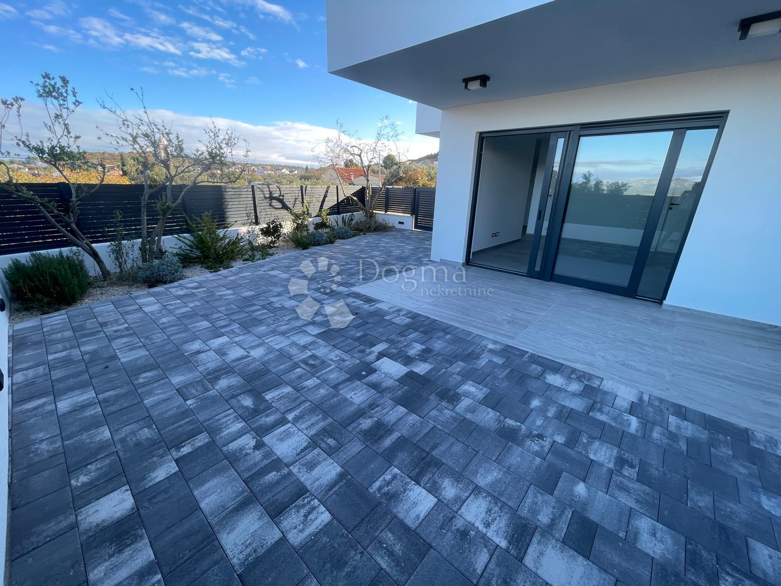 Na prodaju je moderan dvosoban stan S1, smješten u prizemlju kvalitetne novogradnje s ukupno pet stanova, u mirnoj ulici na izvrsnoj lokaciji u Murteru — samo 580 m od plaže i 580 m od centra mjesta.