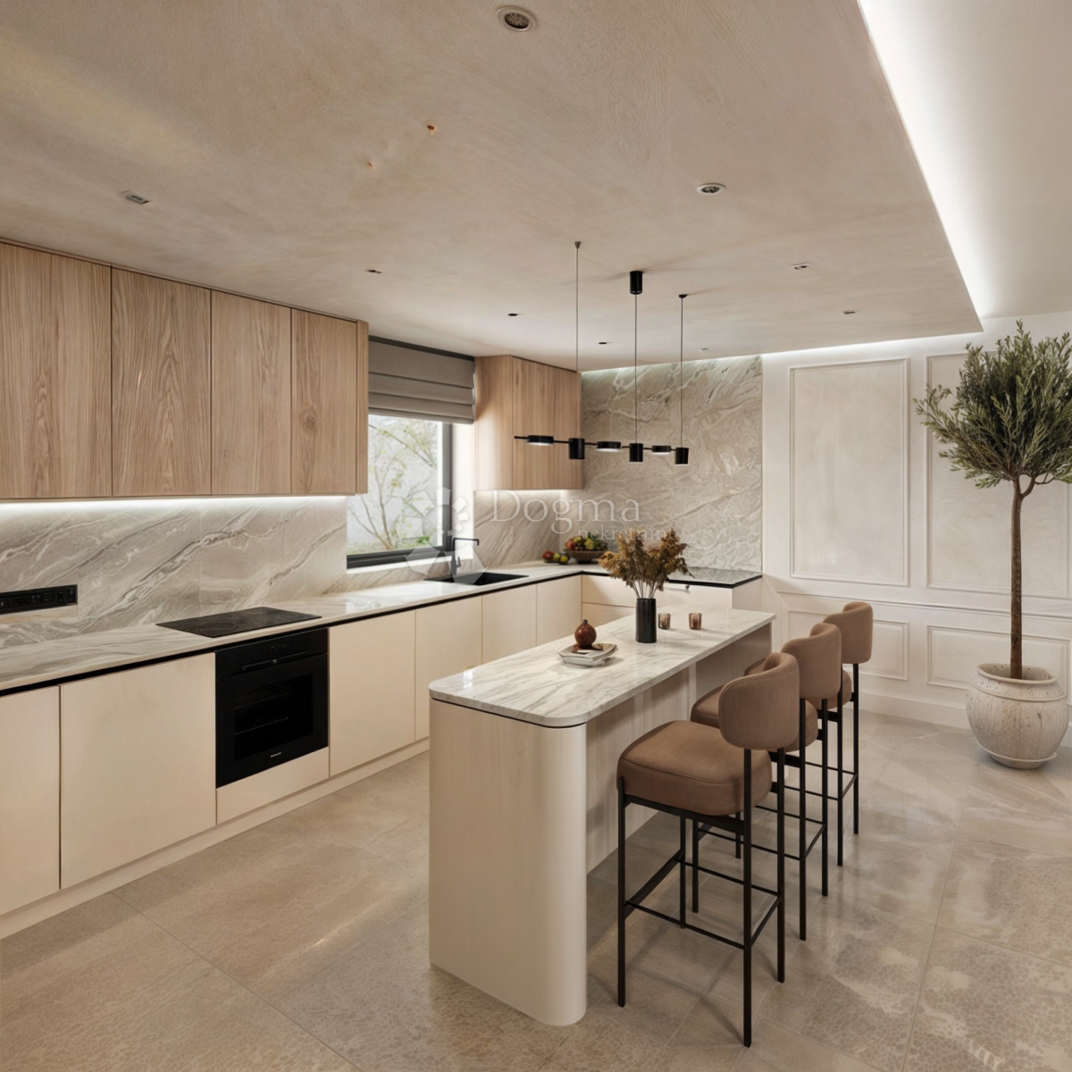 Krovna terasa, koja nudi panoramski pogled na prelijepi istarski krajolik, savršen je prostor za uživanje u ljetnim večerima, nudeći luksuz, komfor i potpunu privatnost. Kuća će biti opremljena podnim grijanjem na dizalicu topline, dok će klima uređaji u svakoj prostoriji omogućiti udobnost i hlađenje u ljetnim mjesecima....
