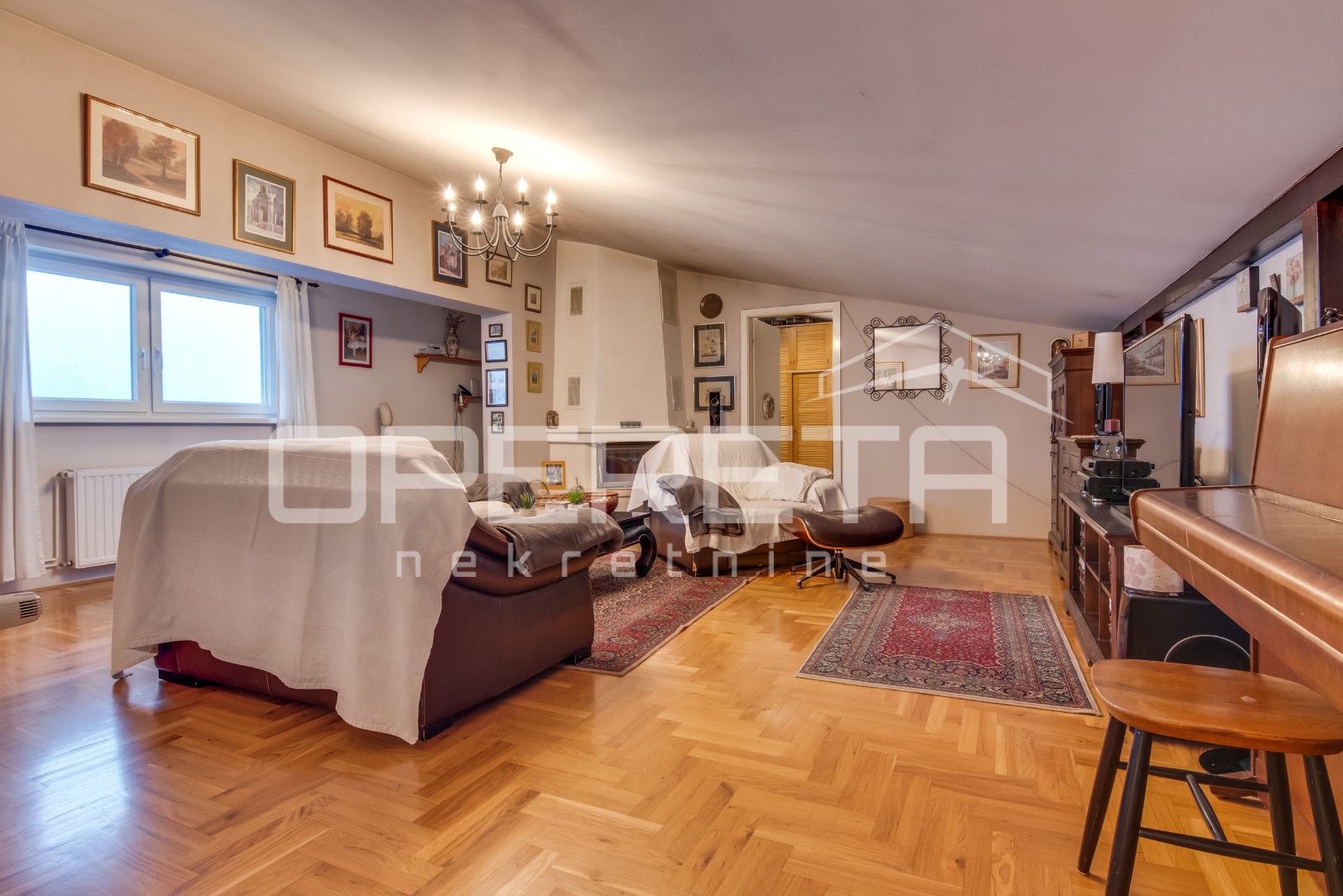 Opis: KUĆA, PRODAJA, ODRA, ODRANSKA ULICA, NKP:612m2, parcela: 1429m2U mirnom djelu Odre smještena nam je kuća u vrlo dobrom stanju. prostire se na 3 etaže od čega je prizemlje poslovni prostor (1990.-ih je bio u funkciji disko kluba) koji je pogodan za razne djelatnosti. Na prvom katu i potkrovlju nam je smješten stan površine cca 280m2, a sastoji se od ulaznog hodnika, kuhinje s blagovaonicom, dodatna blagovaonica, dnevni boravak, garderoba te kupaonica s WC-om dok su u potkrovlju smještene 4 spavaće sobe te balkon. U dvorištu još imamo ljetnu kuhinju, garažu te iznad garaže prostor koji bi se mogao prenamijeniti u još jedan stan. Iza nam se nalazi nadstrešnica te veliko dvorište. Dokumentacija uredna!