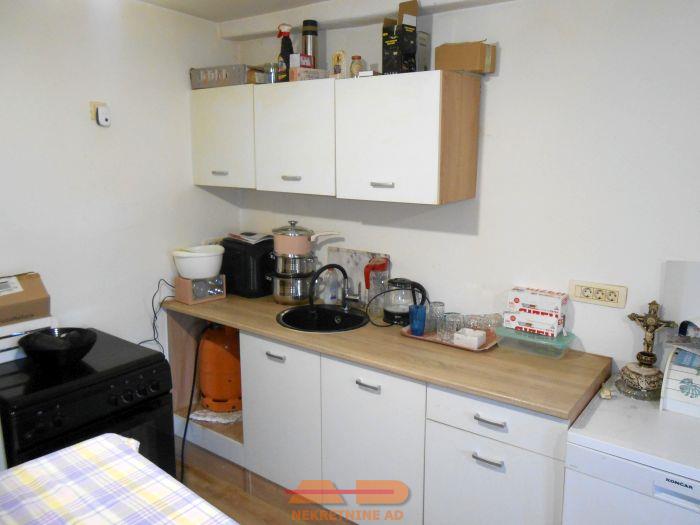 Na kuću se naslanja garaža i iz nje se ulazi u podrum (ispod 1 sobe), te je još samostalan objekt- štala i štagalj.