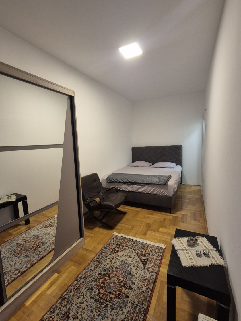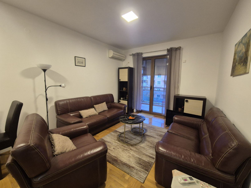 Opis: Jednosoban, udoban stan površine 47 m2 za izdavanje u Profesorskoj zgradi Preko Morače. Stan se nalazi na trećem spratu. Od prostorija sadrži ulazni hodnik, dnevnu sobu, kuhinju, spavaću sobu i kupatilo. Iz dnevne sobe je izlaz na terasu sa pogledom na bulevar. Stan ima i parking mjesto.