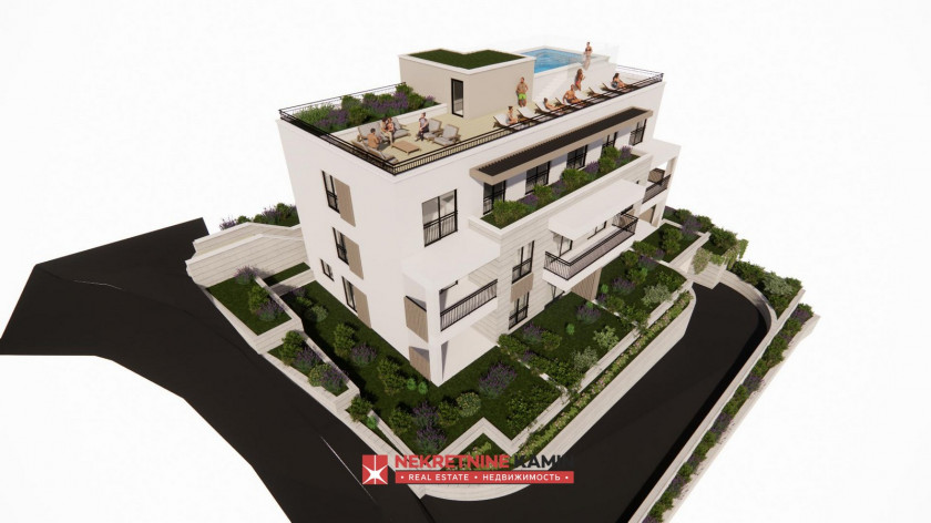 Objekat se sastoji od samo 6 stambenih jedinica što garantuje mir I privatnost. Biće opremljen liftom, kao i bazenom na krovu koji će biti dostupan isključivo vlasnicima stanova — dodatna vrijednost koja pruža autentičan doživljaj luksuznog života na primorju. Posebna pažnja posvećena je vrhunskom kvalitetu završne obrade, modernom dizajnu i komforu.