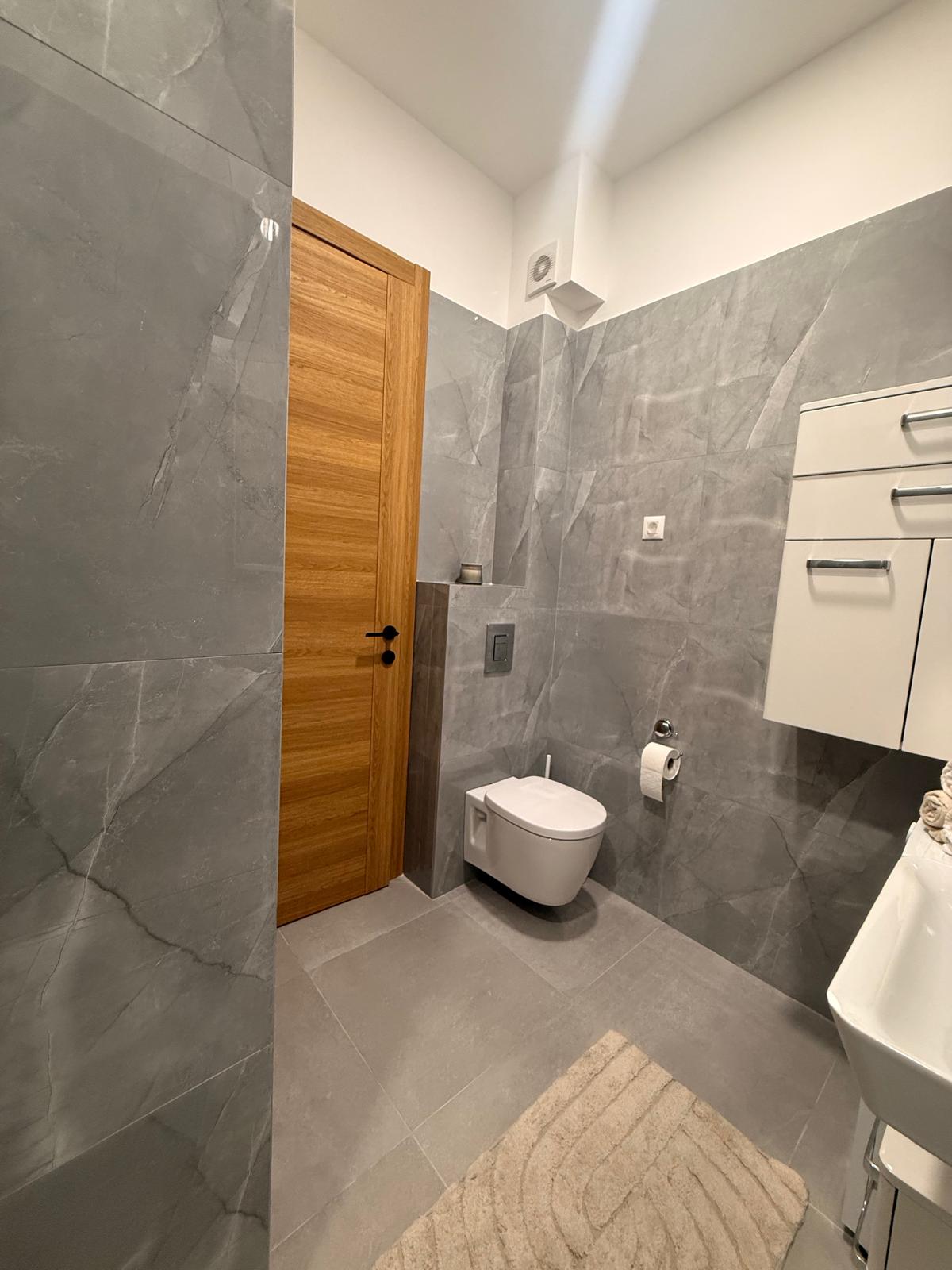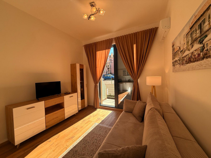 Opis: U novoj zgraadi u Škaljarima u prizemlju zgrade izdaje se luksuzno opremljen studio apartman.