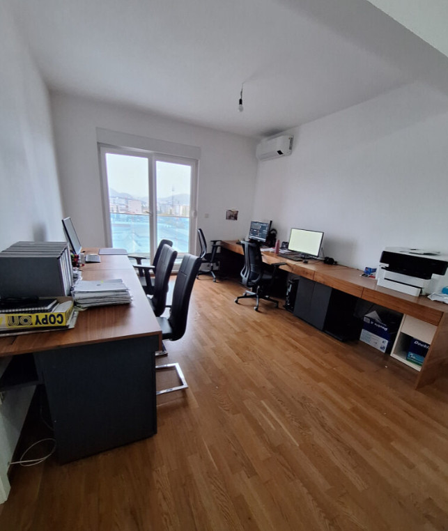 Opis: Prodajemo – polunamješten dvosoban stan, 66 m2 na 6. spratu. Stan se nalazi u novoizgrađenom modernom stambenom kompleksu Južna Kapija grada u Podgorici. Stan je klimatizovan i prodaje se namjesten. Struktura stana: ulazni hol, dnevna soba, kuhinja sa trpezarijom i terasa, spavaći blok sa dvije spavaće sobe i kupatilo. U neposrednoj blizini su dvije škole i dva vrtića, shopping mall, dva velika hiper marketa. Dostupan je parking ispred zgrade.