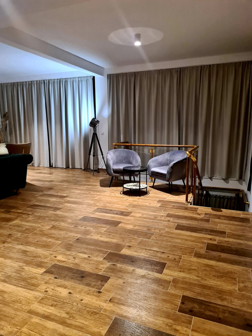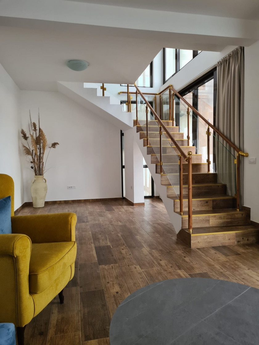 The first part of the house consists of a living room with kitchen, 4 bedrooms, 4 bathrooms, a gallery, and 2 terraces.