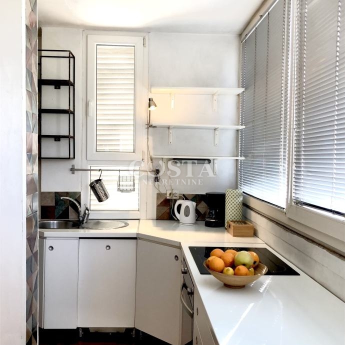 Prodaje se trosobni stan u centru grada s pogledom na gradsku rivu, more i otoke. Stambene površine 80 m2, sastoji od dvije spavaće sobe, dnevnog boravka, kuhinje i blagovaonice, kupaonice te balkonom. Stan je klimatiziran. Nalazi se na 1. katu stambene zgrade s liftom.