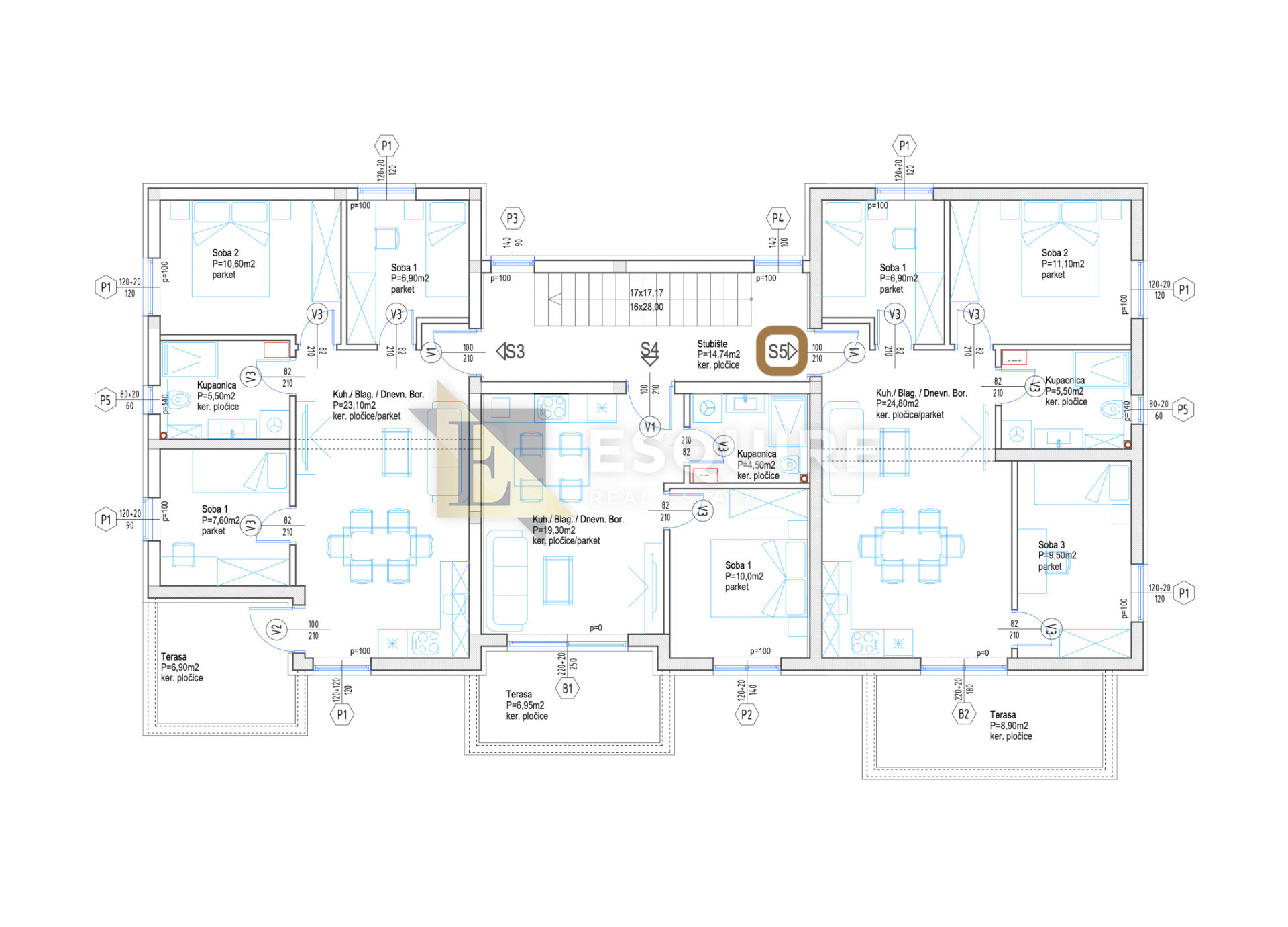Opis: NOVOGRADNJA – Plovanija – trosoban stan S5 na 1. katu od 68,00 m2!!