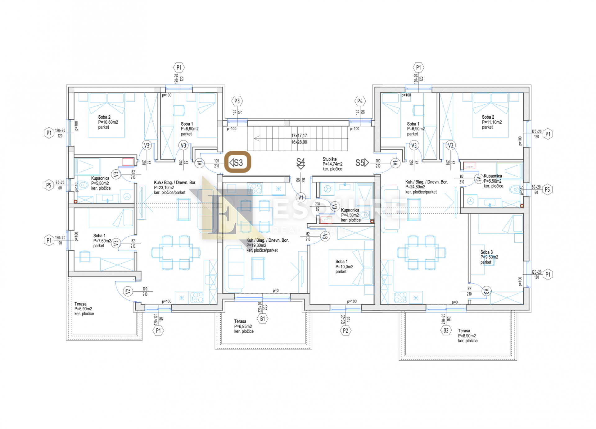 Stan S3 nalazi se na 1. katu i sastoji se od:
