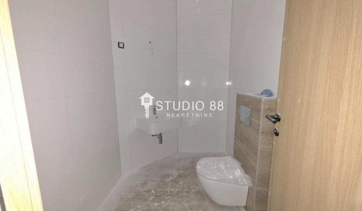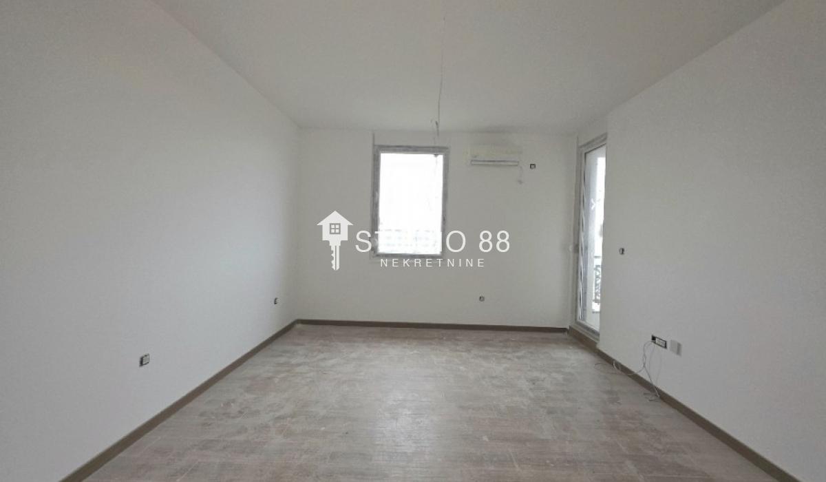 Opis: Trosoban stan površine 92m2 na petom od pet spratova nove stambene zgrade sa liftom. Stan se sastoji od hodnika, dnevnog boravka sa trpezarijom i kuhinjom, dve spavaće sobe, kupatilo, toalet i dve terase. Salamander stolarija sa 10 godina garancije, podno centralno grejanje na gas, interfon, po podovima parket, španska i italijanska keramika, inverter klima, interfon...
