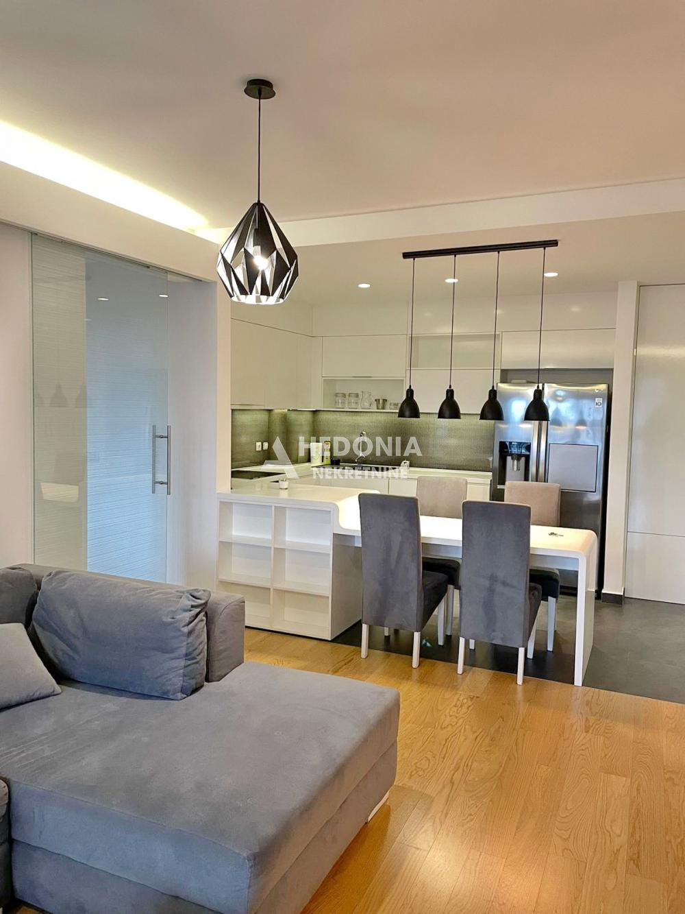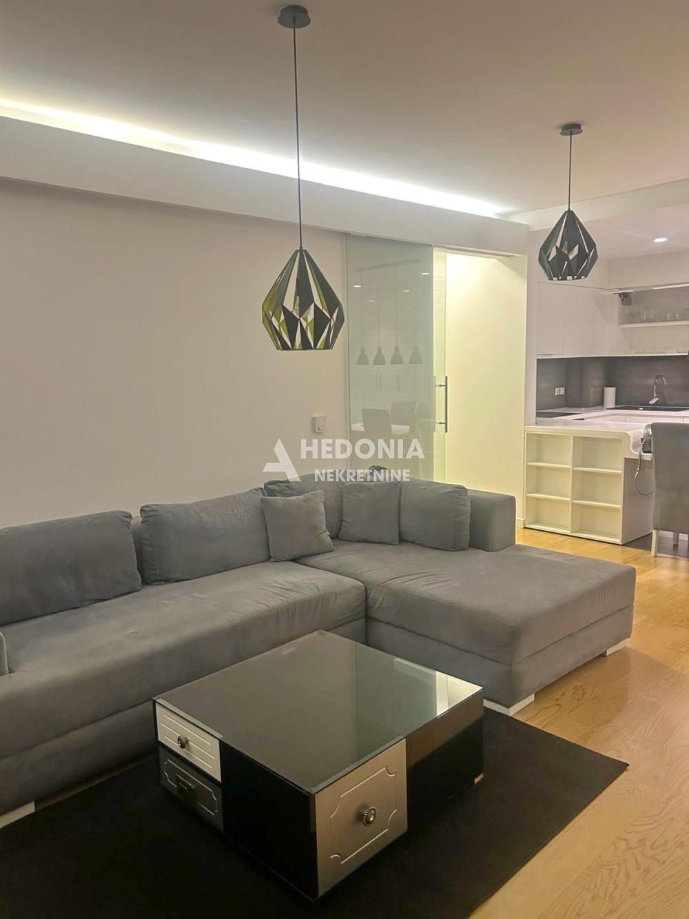 Opis: U prestižnom naselju na Novom Beogradu, West 65, koji je izvanredan primer spoja savremene umetnosti i arhitekture, nalazi se ovaj dvosoban stan za izdavanje. Impresivna izgradnja je učinila da ovaj deo grada postane simbol uspešnosti i kreativnosti. U West-u 65 se, osim modernih, po najsavremenijoj tehnologiji građenih zgrada, vodilo računa i o pejzažnom uređenju. U centru kompleksa nalazi se prelepo osvetljena fontana, pa ćete se osećati kao na moru. Uz veseli žamor ljudi iz okolnih kafića i restorana, učiniće da se osećate zdravo i raspoloženo. Deca, stariji sugrađani kao i kućni ljubimci su zaštićeni i sigurni u ovom kompleksu koji je sinonim za oazu mira, udobnog života i sveukupne lepote. Ceo kompleks ima dvadesetčetvoročasovno fizičko i video obezbeđenje. Stan je luksuzan i sastoji se iz dnevno-kuhinjsko-trpezarijskog dela, spavaće sobe, kupatila i terase. Izdaje se namešten. Mogućnost najma i garažnog mesta. Obavezan depozit prema zakupodavcu u visini rente + 50% provizija agencije za usluge posredovanja.