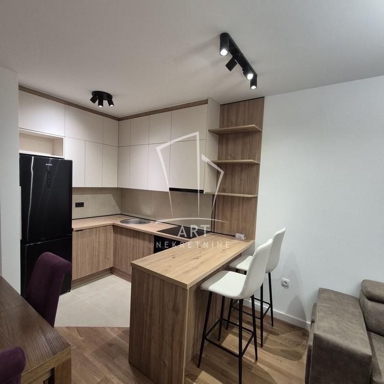 Opis: Svetao, nov, moderno opremljen stan na dobroj lokaciji u novoizgrađenom kompleksu na Ledinama.