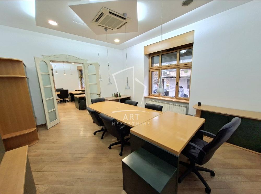 Opis: Izdaje se namešten poslovni prostor na jednoj od najlepših lokacija na Dorćolu u blizni Kalemegdana. Sastoji se iz ulaznog dela, četiri kancelarije koje su međusobno povezane, dva toaleta, kupatila, kuhinje i trpezarije. Grejanje je centralno. Zakupodavac je fizičko lice.