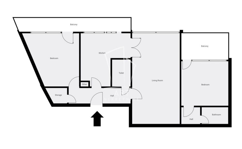 Sastoji se od dnevne sobe,2 spavaće sobe,kuhinje,ostave,2 mokra čvora i 2 terase.