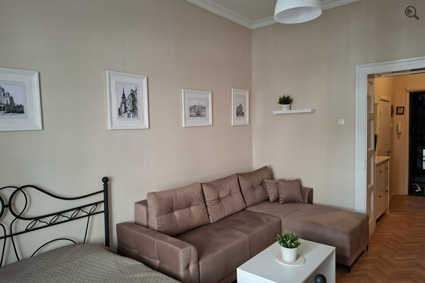 Opis: Apartman Barok. Moderan apartman u samom srcu Beograda. Prostire se na 32m2 i može da ugosti 3 osobe. Apartman se nalazi u staroj, održavanoj zgradi koja poseduje lift. Apartman poseduje bračni krevet i ugaonu garnituru za sedenje ili spavanje, po potrebi. Raspolaže funkcionalnom, modernom kuhinjom, koja poseduje frižider sa zamrzivačem, indukcionu ploču. Kupatilo je opremljeno niskom kadom i modernim sanitarijama. Poseduje veš mašinu. Bez obzira što se stan nalazi u zgradi u strogom centru, zbog nove stolarije, buka je svedena na minimum. Gostima je na raspolaganju besplatan WiFi internet, flat-screen TV sa kablovskim kanalima, klima uredjaj, čisti peškiri i posteljina. Posebnu draz apartmanu daje balkon sredjen u francuskom stilu. U radijusu od 300 m od apartmana su tri javne garaže, gde se gosti mogu parkirati. Nudi sve što je neophodno za udoban i komforan boravak! Udaljen je svega par minuta hoda od Studentskog trga i glavne pešačke zone - Knez Mihailove ulice. Takodje Trg Republike i boemska četvrt Skadarlija nalazi se na samo 5-6 minuta pešačke udaljenosti. Jednako blizu je i Kalemegdanska tvrdjava....