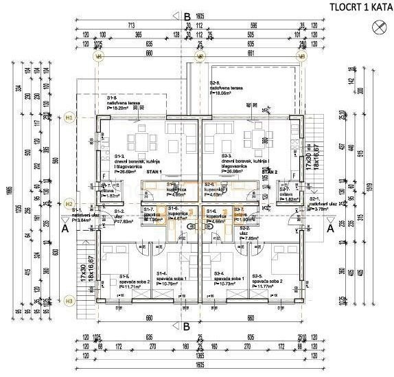 Zemljište ima pravomoćnu građevinsku dozvolu i projektnu dokumentaciju za izgradnju manje luksuzne zgrade sa četiri dvosobna apartmana – dva apartmana u prizemlju (86,11 m2 i 82,03 m2) te dva na katu (79,33 m2 i 77,79 m2), svaki sa vlastitim ulazom. Svaki apartman imati će pogled na more.