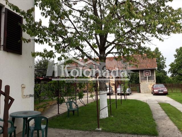 Opis: Kuća se nalazi na ravnom i ograđenom placu od 16ari, korisne površine 377 m2. Sastoji se od suterena, prizemlja, sprata i potkrovlja. U suterenu se nalaze tri prostrane ostave i garaže za dva automobila. Prizemlje se sastoji od hodnika, kupatila, dve spavaće sobe i dnevnog boravka sa kuhinjom, trpezarijom i ostavom. Sprat se sastoji od hodnika, kupatila, tri spavaće sobe, dve terase i dnevnog boravka sa kuhinjom. Potkrovlje ima dve sobe i terasu. Spratnost je povezana unutrašnjom vezom. Ima etažno grejanje na gas, podovi su kombinacija parketa i laminata. Stolarija je drvena i ALU sa kapacima. Ima trofaznu struju, vodu, telefon. U dvorištu se nalazi višenamenski pomoćni objekat.
