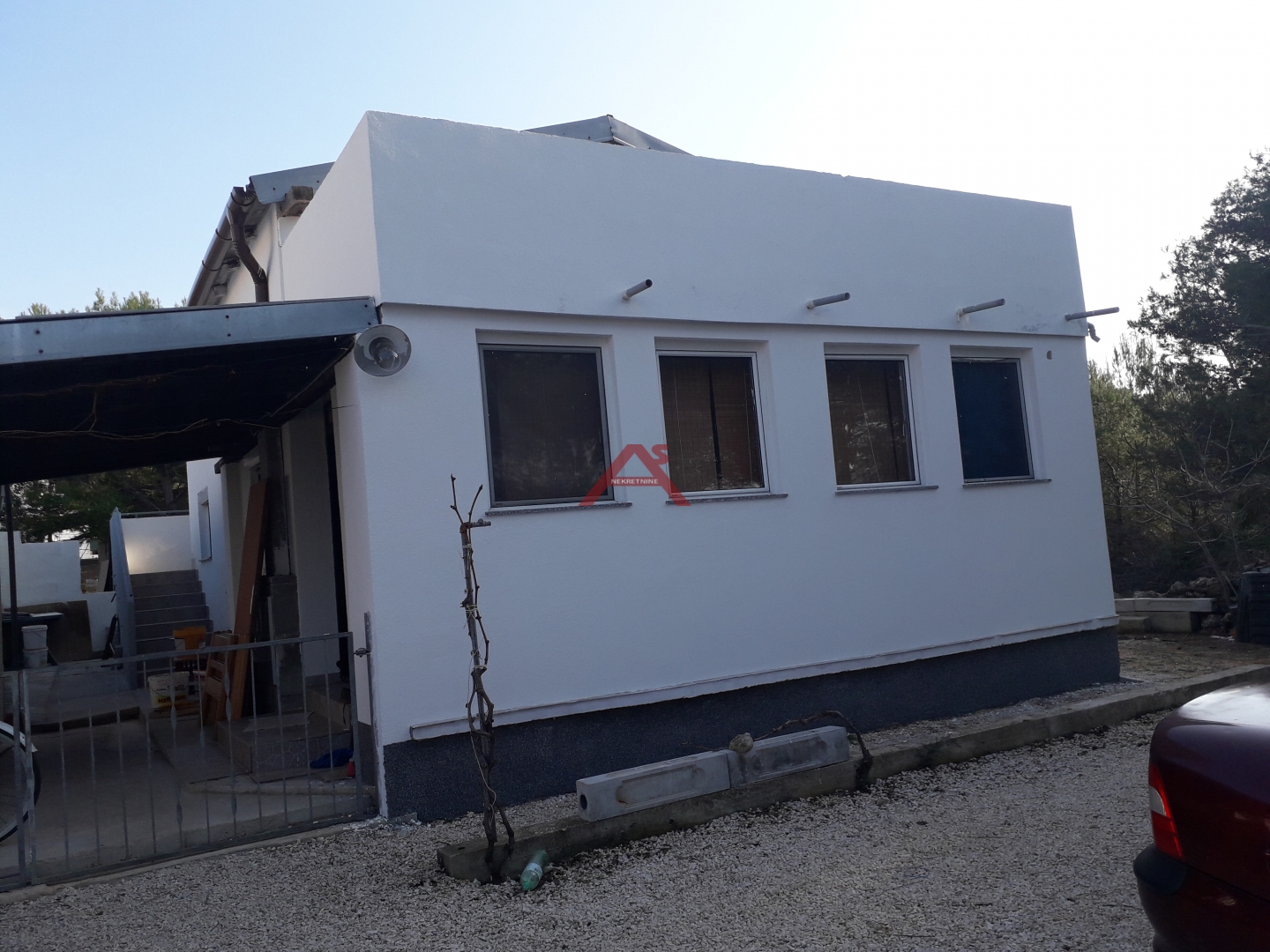 Opis: Prodaje se samostojeća kuća na otoku Viru u rijetko naseljenom dijelu otoka. Od mora je udaljena oko 350 m, a od centra mjesta oko 2 km gdje se nalaze svi potrebni sadržaji koji služe stanovnicima mjesta kao i posjetiocima. Kuća se nalazi u maloj slijepoj uličici u kojoj su samo 2 kuće. Tlocrtno kuća ima 68 m2, a proteže se na 2 etaže sa posebnim ulazima. Prizemlje ima ulazni hodnik ili zatvorenu i ostakljenu terasu, hodnik u kući, kuhinju, kupaonicu, dnevnu sobu i 2 spavaće sobe. Kat kuće ima pred ulaz, dnevni boravak sa kuhinjom, kupaonicu, 2 spavaće sobe i veliku terasu sa pogledom na more. Ispred kuće se nalazi velika terasa u hladovini, uređeni studio apartman i zatvoreni vanjski tuš. Kuća je izolirana i fasadirana. Voda je iz vlastite bušotine i pitka je, a odvod je crna jama. U dvorištu stanu 3 automobila. Za dodatna pitanja kao i dogovor za razgledavanje molim da nazovete na 0989137596. Mogući dogovor.