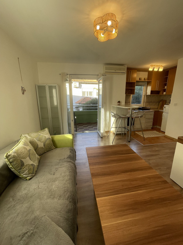 Stan se nalazi na ugodnoj, mirnoj lokaciji, nije na brdu! More je udaljeno samo 8 minuta hoda. U blizini se nalaze: Megamarket, restorani i kafići. Uslovi plaćanja: prvi i posljednji mjesec, plus depozit u iznosu jedne mjesečne kirije. Tel./Viber/Whatsapp +38269777005
