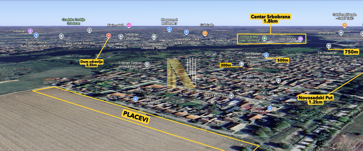 U neposrednoj blizini placeva se nalazi zabavište, marketi, fudbalski klub, kao i raznovrsne zanatske radnje.