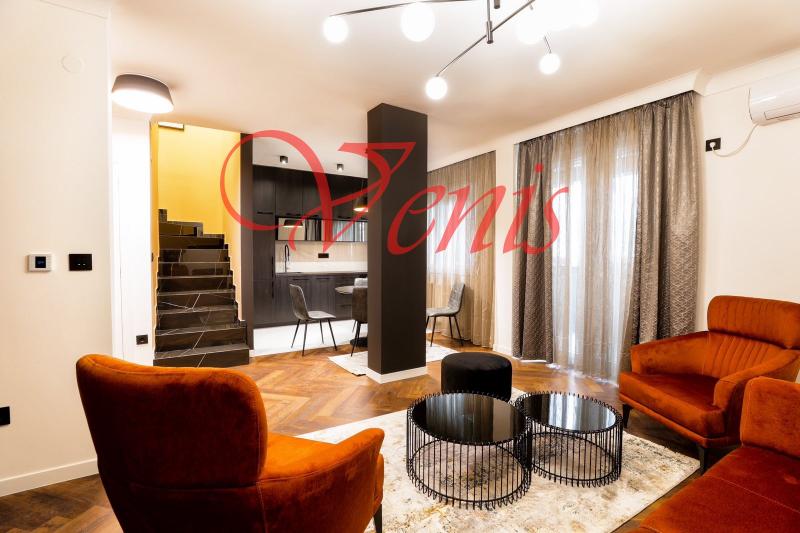 Stan je po strukturi duplex-četvorosoban, sa prostranim dnevnim boravakom, trpezarija i kuhinjom, tri spavaće sobe, kupatilom, toaletom, dve terase i jednom ostavom. U sklopu stana se izdaju i dva garažna mesta u suterenu ispod zgrade.