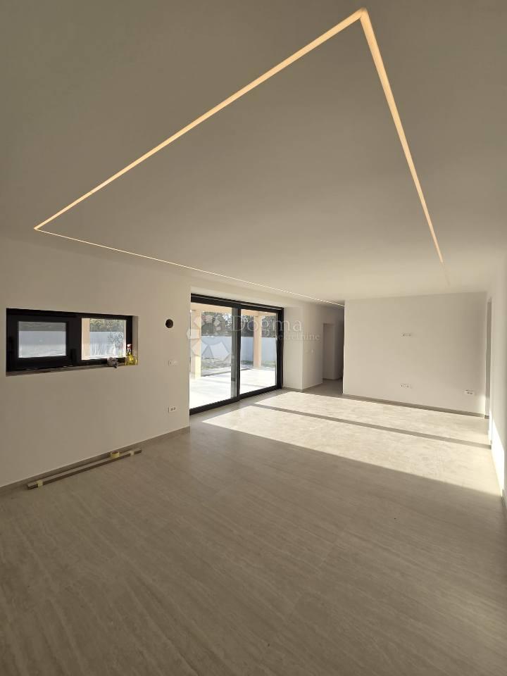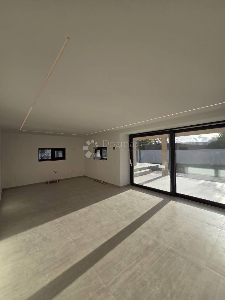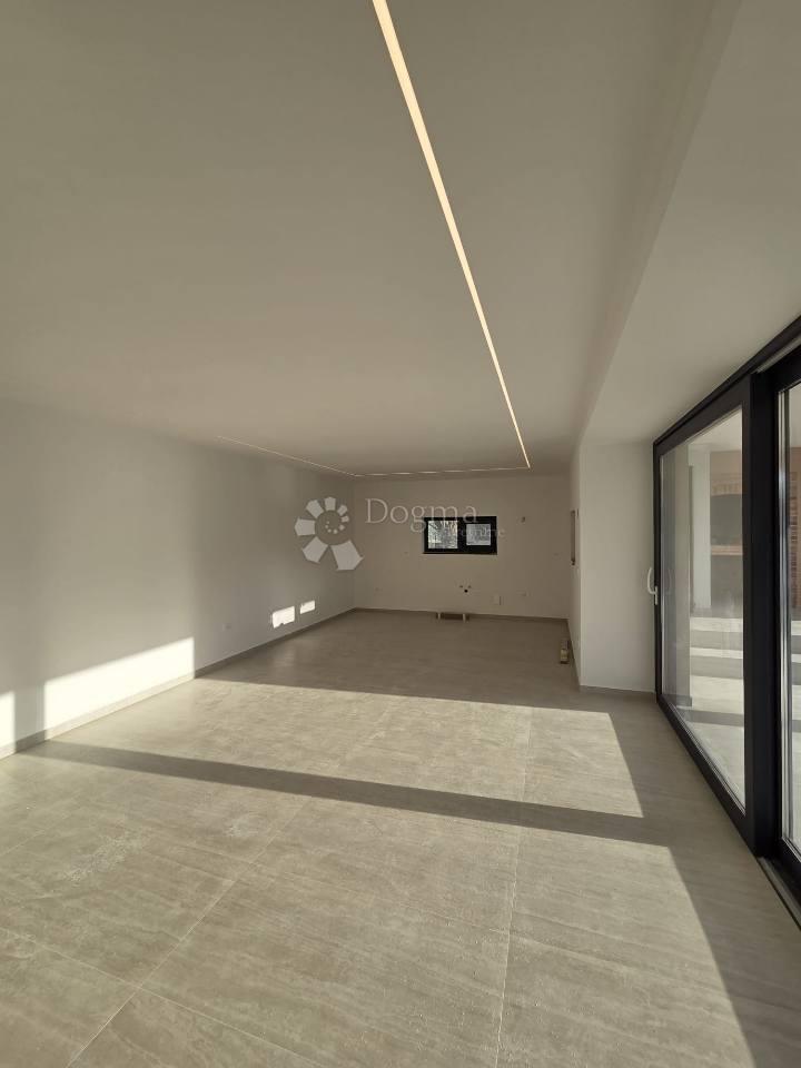 Stambena površina od 103 m2 organizirana je tako da pruža komfor i logičan tok prostora. Dnevni boravak je povezan s kuhinjom i blagovaonicom, a velike staklene stijene otvaraju izlaz na natkrivenu terasu koja se nastavlja na vrt. U noćnom dijelu nalaze se tri spavaće sobe i dvije moderne kupaonice, od kojih je jedna en suite. Podno grijanje, klima uređaji i kvalitetni materijali osiguravaju visoku razinu udobnosti tijekom cijele godine.