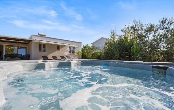 Ovo imanje nudi i potpuno opremljen prostor za uživanje – bazen od 29 m², jacuzzi za četiri osobe, sunčalište te dječje igralište koje će oduševiti najmlađe.