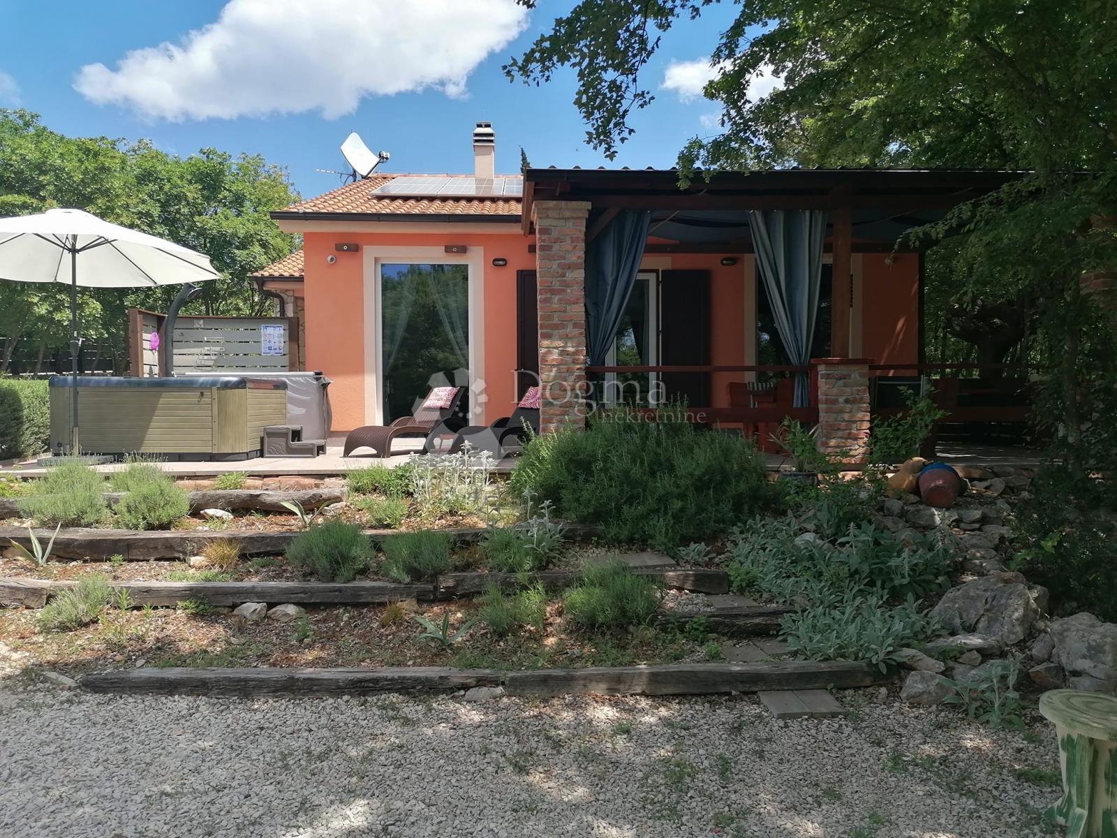 U nastavku dnevnog prostora izlazi se na natkrivenu terasu s roštilj zonom i pogledom na idiličan vrt pun zelenila uz žubor vode koji dopire s drugog kraja terase gdje se nalazi hidromasažna kada. Postoji još jedna nenatkrivena terasa za uživanje iza kuće.