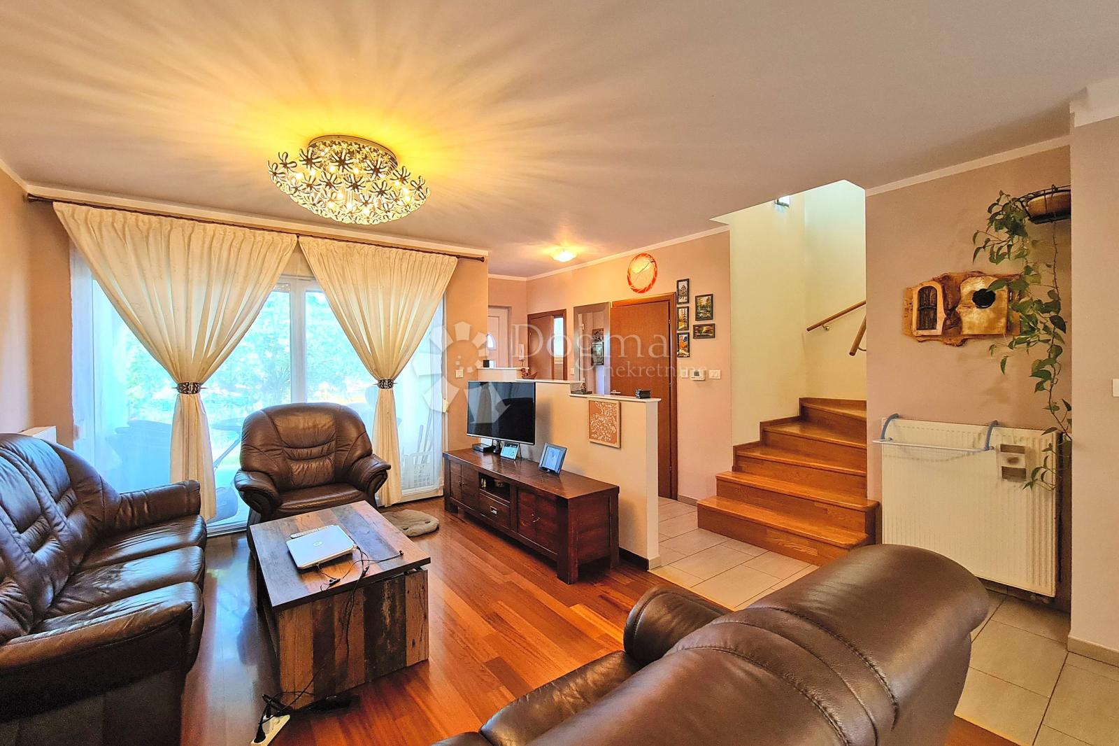 Stan se sastoji od tri sobe i kupaone na 1. katu, te balkona sa kojega se pruža pogled na more, (iznad stana je tavan), u prizemlju su garderoba, dnevni boravak i kuhinja, kupaona, te ostava. Sa prizemlja se izlazi na okućnicu od 119.17 m2 (upisano u vlasnički list) na kojoj se nalaze dva parkirna mjesta, roštilj i vrt, te je sve ograđeno.