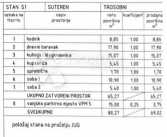 Opis: Prodaje se dvosoban stan u novogradnji ukupne površine 65.27 m2 koji se nalazi na suterenu zgrade.