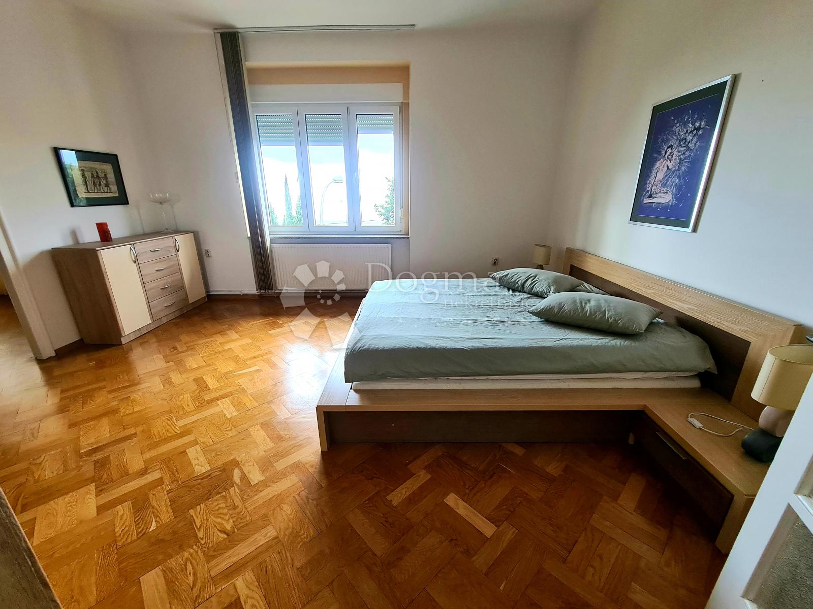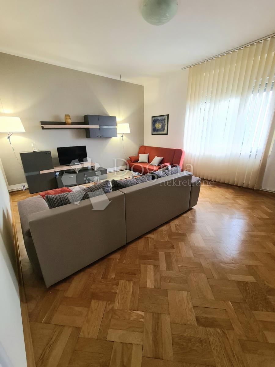 Opis: TRSAT dugoročni najam komfornog stana od 87,10 m² + ostava od 6 m². Sastoji se od 2 spavaće sobe, dnevnog boravka, kuhinje s blagovaonom, izbe, kupaone i hodnika. Južne orijentacije s pogledom na more. Kompletno je adaptiran i namješten. Plinsko etažno centralno grijanje, klima, PVC stolarija. Zaseban ulaz i terasa na korištenje. U blizini centra Trsata gdje se nalaze svi važni sadržaji ali i nadomak centra grada.