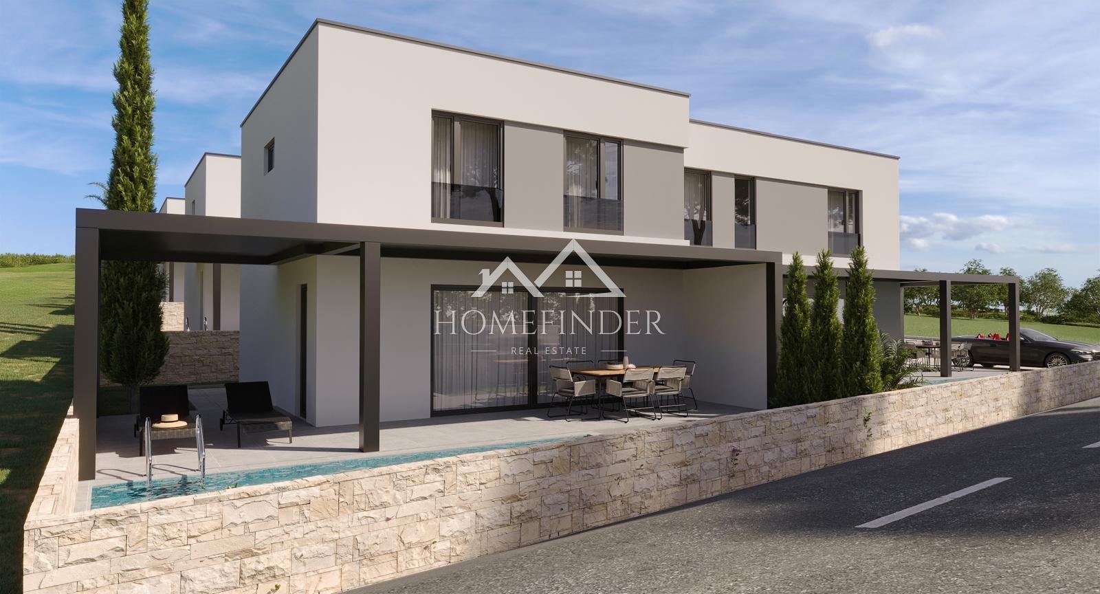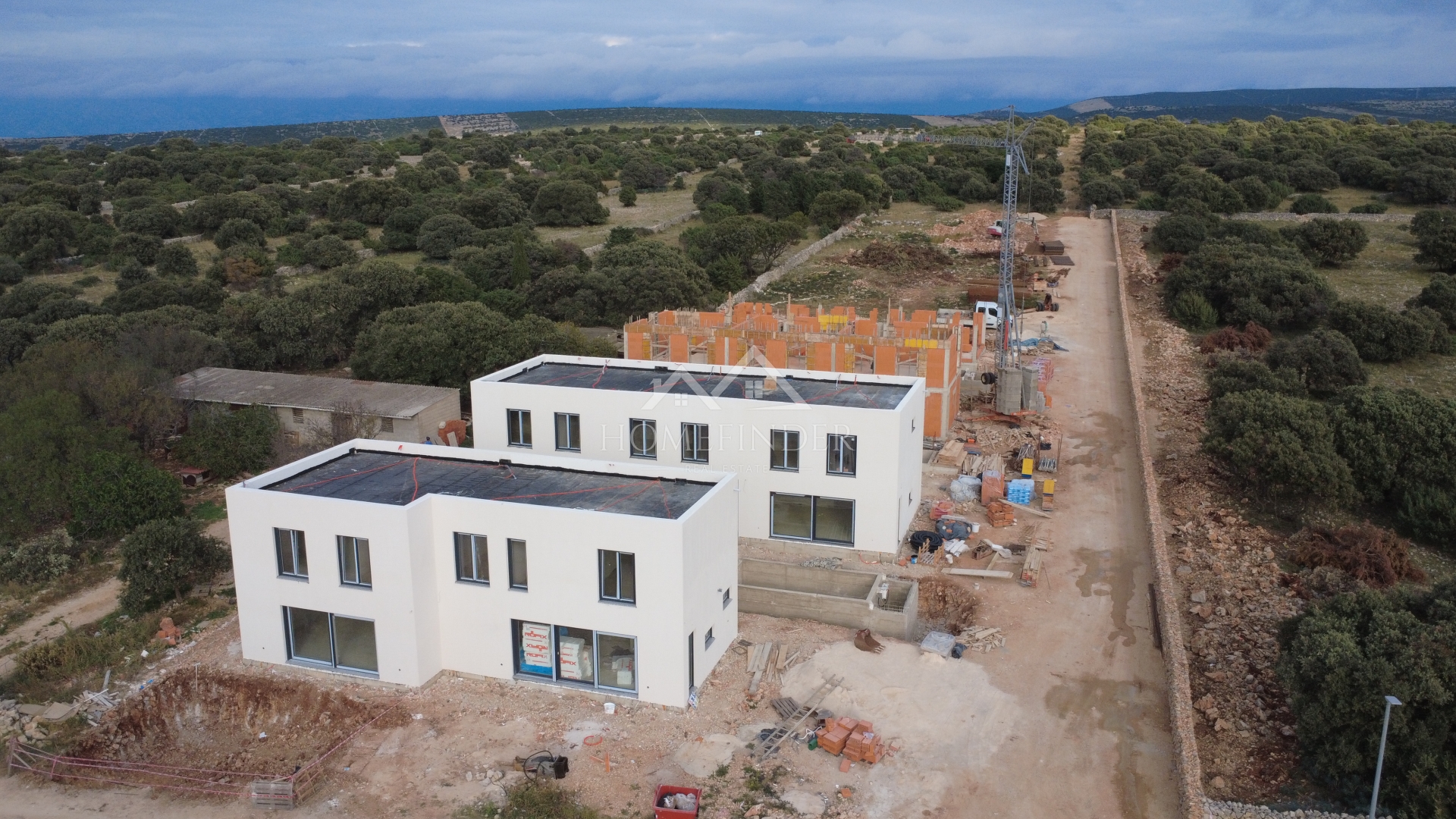 Na prodaju je moderna luksuzna kuća u nizu površine 110,41 m², na dvije etaže, s privatnim bazenom, dvorištem, vanjskim spremištem i dvama parkirnim mjestima. Kuća je dio suvremenog stambenog kompleksa od ukupno 8 zgrada, pri čemu svaka zgrada sadrži 3 kuće u nizu. Smještene su u mirnom, uređenom i atraktivnom naselju Mandre na otoku Pagu....