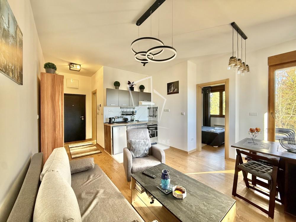 Prodaje se kompletno namešten dvosoban stan u mirnom naselju Palisad, na Zlatiboru. Stan je uknjižen, a njegova površina je 34m2.