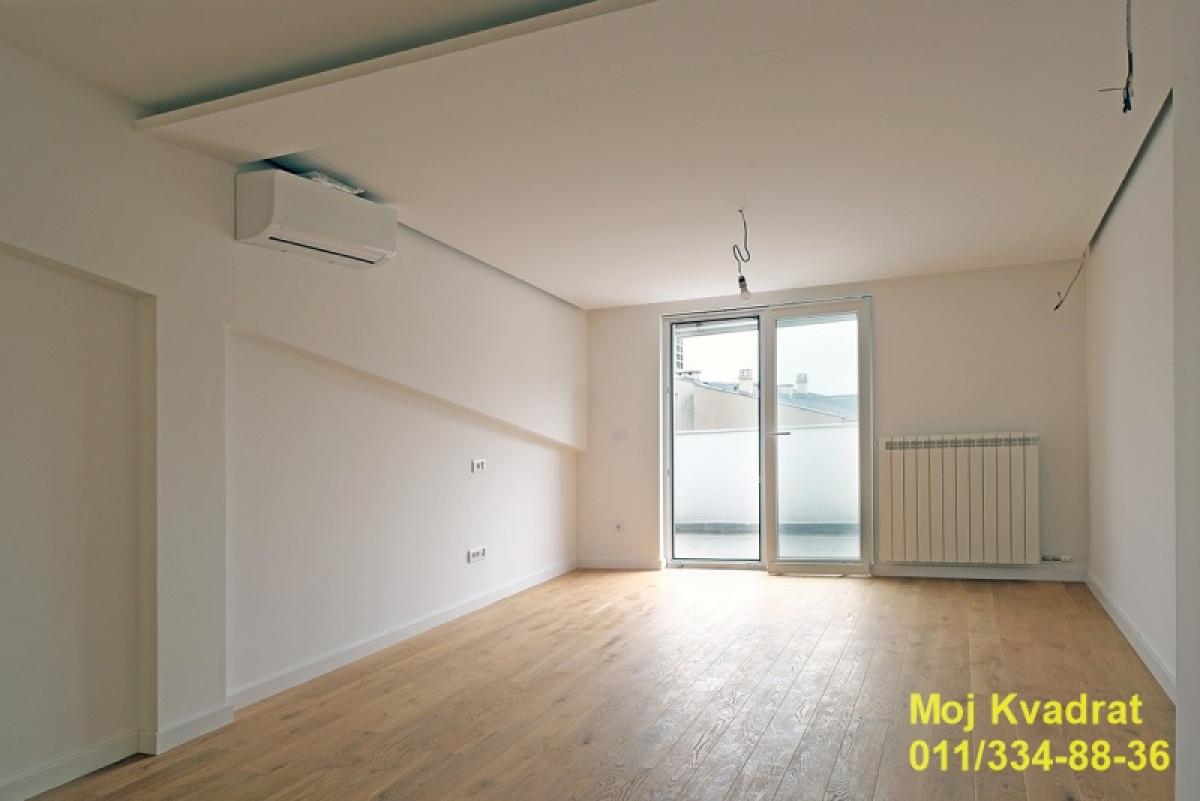 Sastoji se od otvorenog prostora predviđenog za kuhinju, trpezariju i dnevni boravak iz kog se izlazi na terasu. Spavaća soba je izdvojena, a u kupatilo se ulazi iz predsoblja iz kog vodi dug hodnik do open space-a. U najvišem delu stana visina plafona je 2.80 metara, a od polovine dnevne sobe blaga kosina se spušta na 2.20 metara visine u delu gde su balkonska vrata.