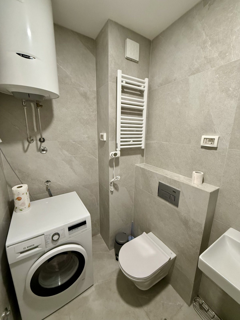 Izdaje se moderno opremljen jednosoban stan površine 47m2, nova lamela Central Pointa, faza 8. Stan je na petom spratu od ukupno devet, dostupan za useljenje odmah.