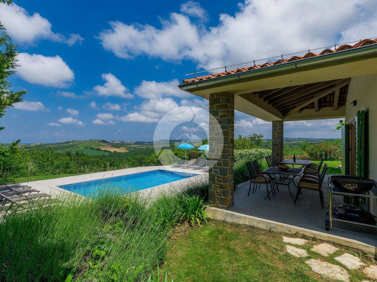 Opis: Lijepa i šarmantna samostojeća kuća površine 250 m2, smještena u mirnom dijelu istarskog poluotoka, u blizini grada Buje. Ova prostrana nekretnina izgrađena je 2010. godine i raspolaže s pet spavaćih soba, što je čini izvrsnim izborom za veće obitelji ili one koji traže dodatni prostor za rad i odmor. Kuća se nalazi na parceli veličine 1270 m2, orijentirana prema jugozapadu, što omogućuje obilje prirodnog svjetla tijekom cijelog dana.Posebnu vrijednost ovoj kamenoj kući daje pažljivo uređena okućnica s bazenom i roštiljem, idealna za opuštanje i druženje na otvorenom. Prostrana terasa i balkon nude prekrasan pogled na more i okolnu prirodu, dok dvorište pruža dodatni prostor za uživanje u zelenilu. Unutrašnjost je opremljena kuhinjom s aparatima, perilicom posuđa, perilicom rublja, kadom, TV-om, krevetima i radnim stolom, što dodatno doprinosi udobnosti svakodnevnog života.Kuća je opremljena modernim sustavima grijanja i hlađenja; uključuje podno grijanje, centralno grijanje i klima uređaje, što jamči ugodnu temperaturu tijekom cijele godine. Parkiralište je dostupno, a pristup je omogućen asfaltiranim putem. Satelitska TV omogućuje raznovrstan zabavni sadržaj....