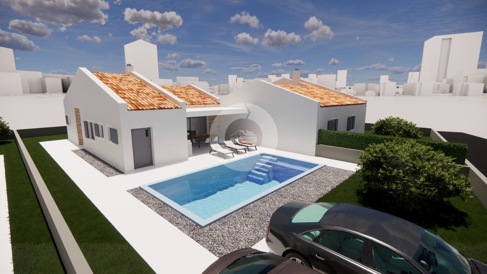 Investitor kreće u gradnju četiri prizemnica u nizu u jednom malom istarskom gradiću nedaleko od Poreča (10 km) i sadražaja mjesta (1 km). Lokacija je vrlo mirna, okružena prirodom. Kuća se sastoji od ukupno tri spavaće sobe i dva kupatila, strojarnice/spremišta, kuhinje, blagovaone i dnevnog boravka sa izlaskom na natrkivenu terasu od 20,9 m2. Kući pripada okućnica od cca 450 m2 u kojoj je predviđen bazen od 27 m2, terasa, uređeni vrt i parking (netto okućnice ostane oko 300 m2). Grijanje/hlađenje će biti putem klime, a grijanje je predviđeno i podno na stuju. Stolarija je PVC sa troslojnim staklom i električnim roletnama. Idealan je odabir za one koji vole prizemnice, koji ne žele veliku površinu za održavanje i koji vole mirne lokacije.